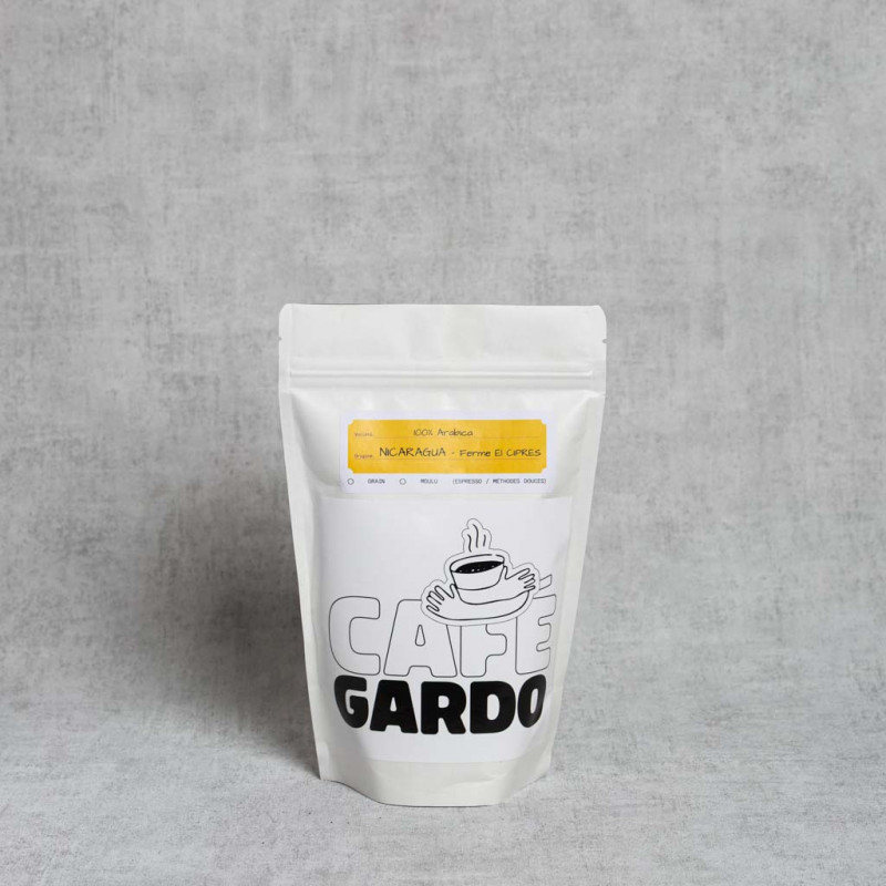 El Cipres cultive le café dans un système agroforestier, en n'utilisant que des produits organiques sans utilisation d’intrants chimiques. Au niveau de la gestion de la ferme, l'exploitant s’est aussi concentré sur le cycle de l'eau, en réutilisant les eaux de pluie et en mettant en place un système de traitement de l'eau usée. Ces mesures ont un effet positif sur la biodiversité et la santé des travailleurs de la ferme. Située à une altitude relativement élevée de 1200 à 1500 m., El Cipres est une ferme de 20 hectares perchée sur les pentes montagneuses de la ville d'Aranjuez. Pour Saulo la combinaison des trois facteurs que sont l’altitude, les sols humides et l'ombre des grands arbres d’ombrage, lui permet d'obtenir le meilleur - en terme de goût - des variétés présentes sur la ferme Ce café est un blend d'un type particulier. En effet s'il n'est composé que de la variété CATTURA, il se distingue par son process: 2/3 de la récolte est traité lavée et 1/3 en nature anaréobie.